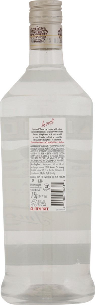 Vodka infused with natural flavors. Gluten free. Ste Pierre Smirnoff. Enduring quality to purveyors of the people. For a smooth and refreshing taste. Smirnoff flavors are made with triple distilled vo…