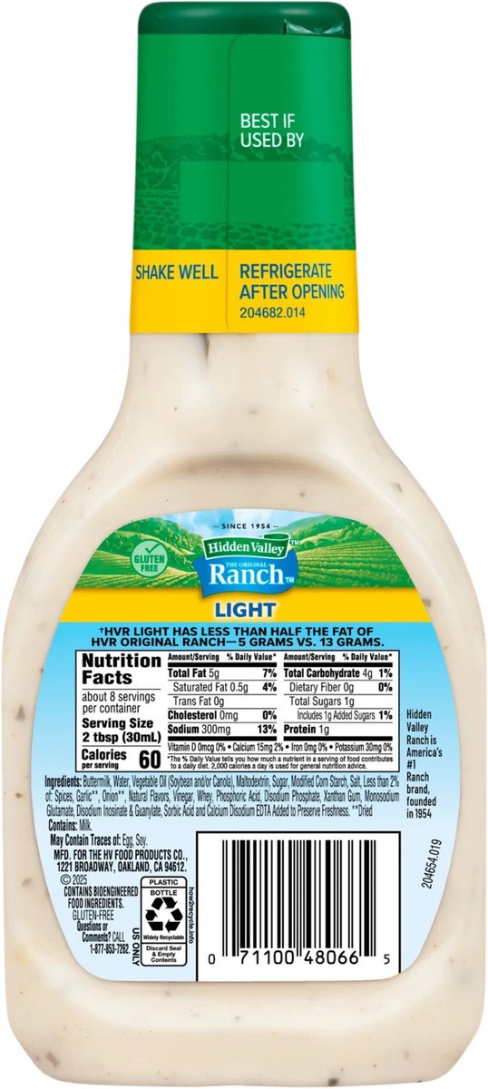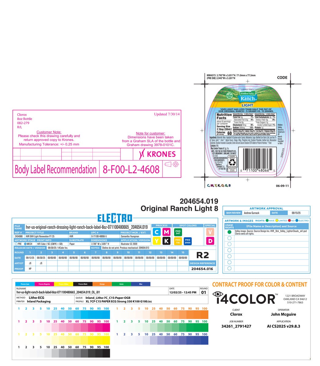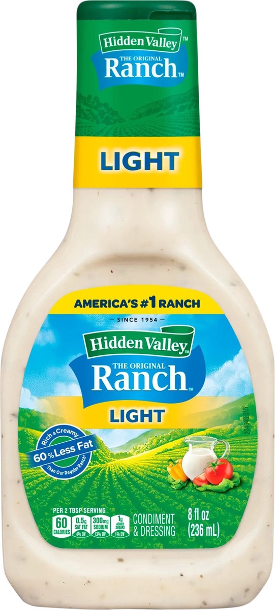 Hidden Valley Light Ranch Condiment and Dressing, 8 Fluid Ounces