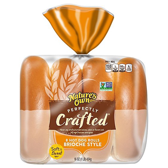 Natures Own Perfectly Crafted Brioche Style Hot Dog Buns Non-Gmo Hot Dog Rolls 8 Count - 16 Oz