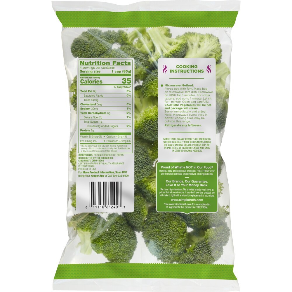 Simple Truth Organic® Broccoli Florets.No preservativesCooks in Microwaves or Air FryersSteam In bag