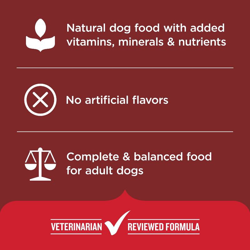 - NATURAL DOG FOOD: Natural food with added vitamins, minerals & nutrients for your dog's daily meals. Made with no artificial flavors, it offers real taste that dogs love