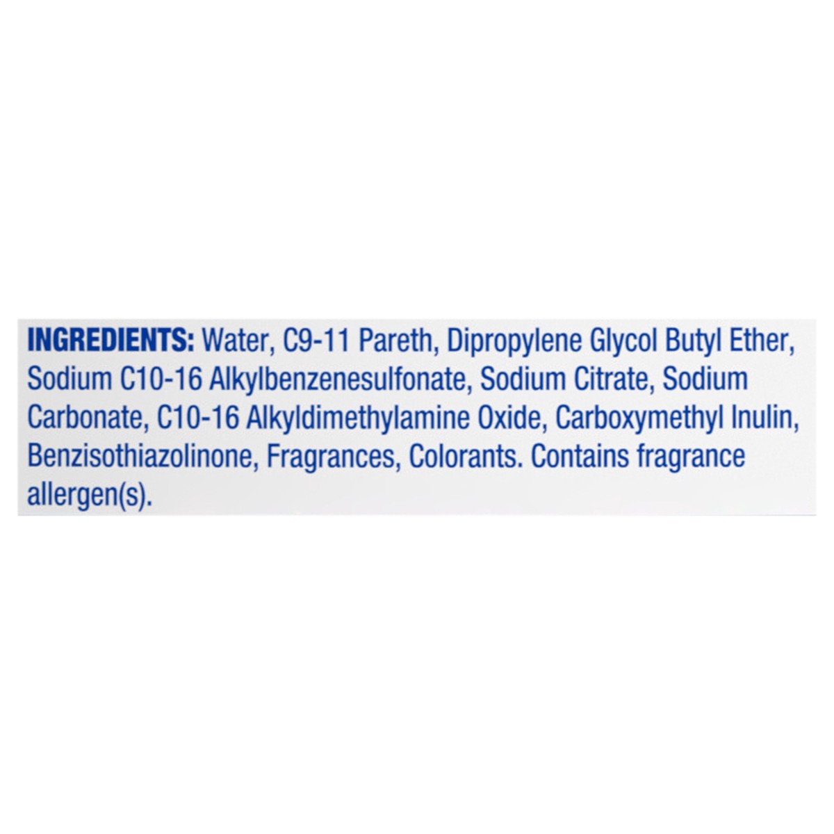 Water, C9-11 Pareth, Dipropylene Glycol Butyl Ether, Sodium C10-16 Alkylbenzenesulfonate, Sodium Citrate, Sodium Carbonate, C10-16 Alkyldimethylamine Oxide, Carboxymethyl Inulin, Benzisothiazolinone, …