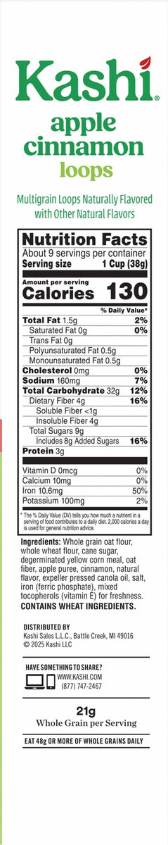 Kashi Apple Cinnamon Loops Cereal, Whole Grain, 12.7 oz