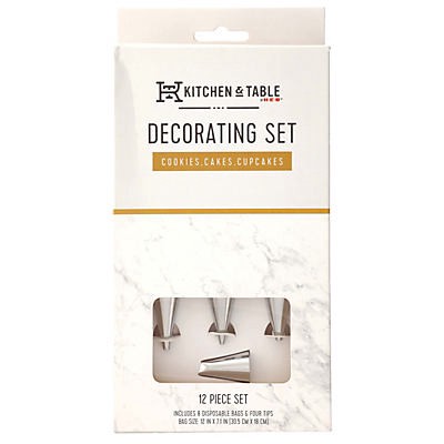 Create both delicious and eye-catching cookies, cakes, and cupcakes with ease with our exclusive Kitchen & Table by H-E-B™ Decorating Set. Set includes 12 pieces: 8 disposable bags and four (4) tips …