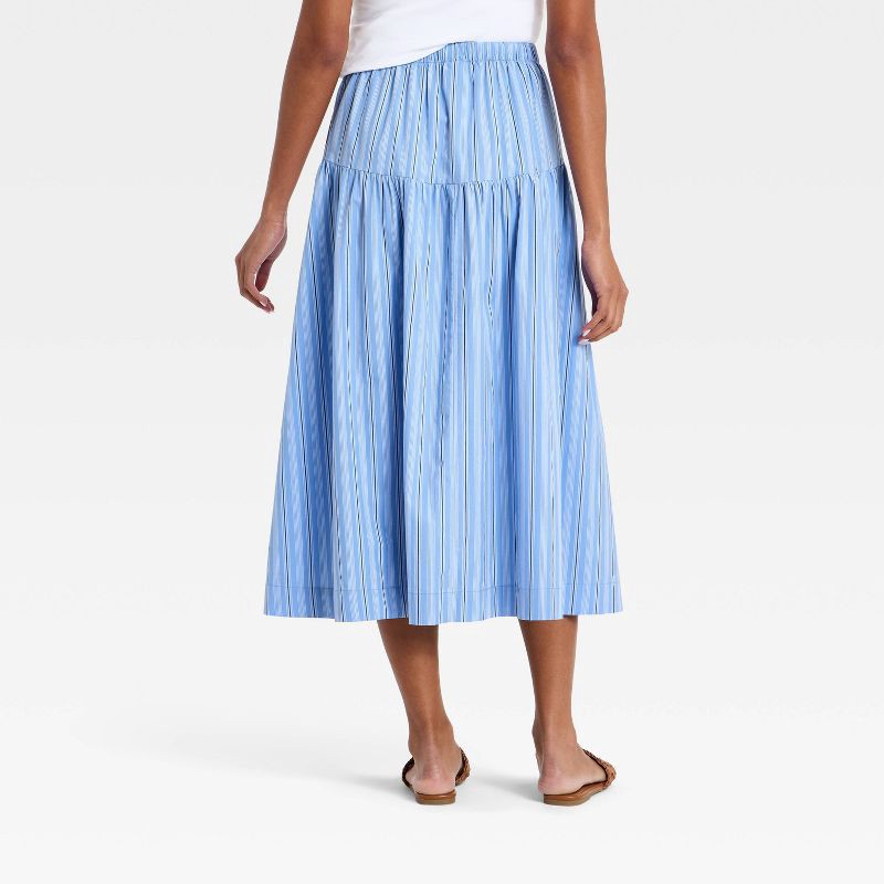 Women's Resort Poplin Drop Waist Midi Skirt - A New Day™ Blue Striped XS