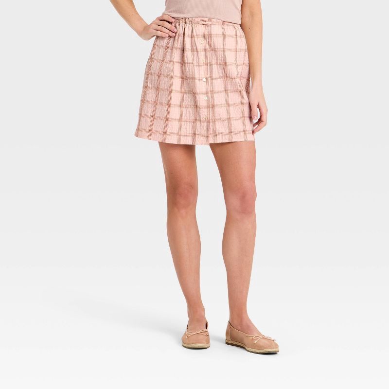 Women's Mini A-Line Skirt - A New Day™ Light Pink Plaid XS
