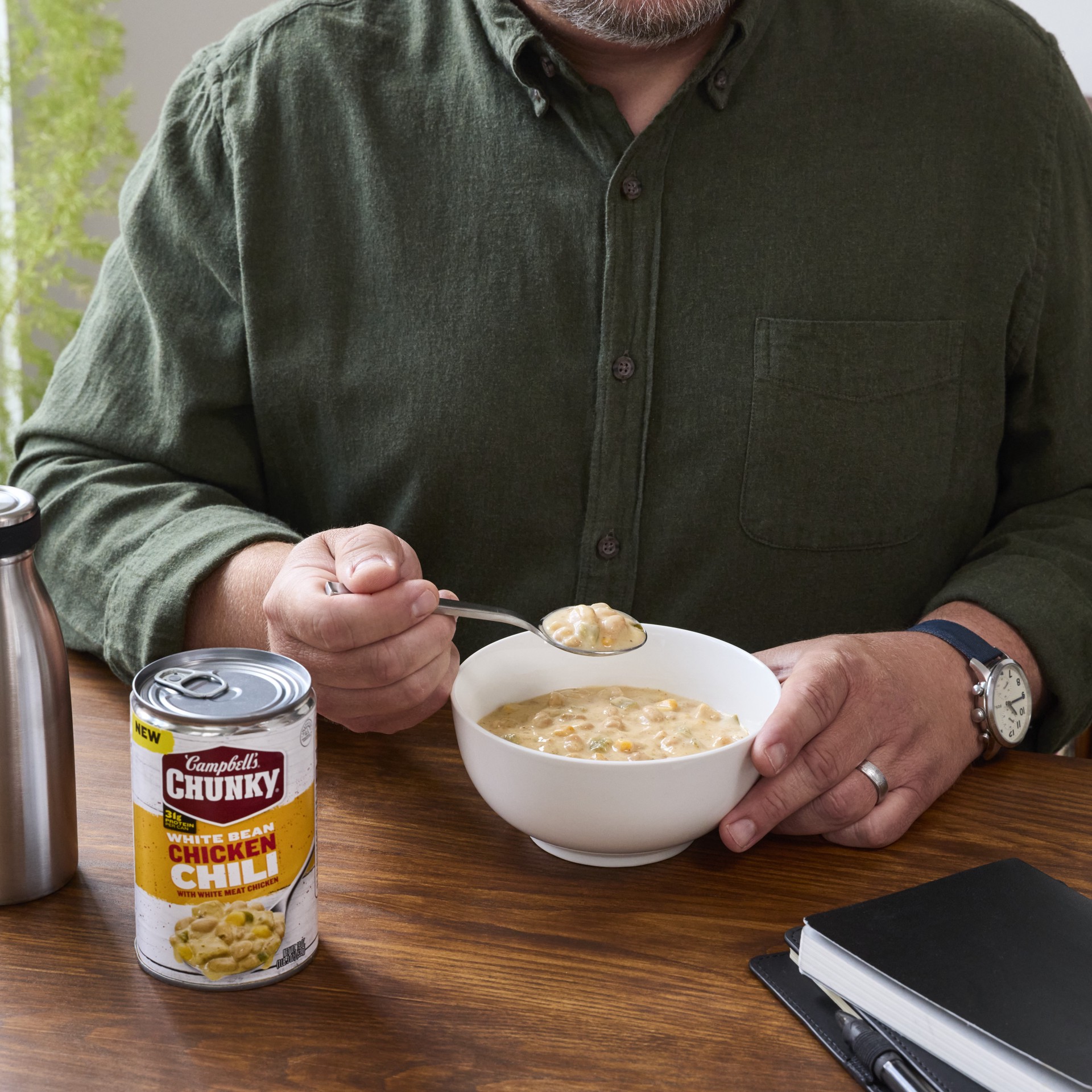 Dig into a hearty dish with Campbell''s Chunky White Bean Chicken Chili. This convenient canned chili features big chunks of white chicken meat with no antibiotics, pea beans, green peppers, and corn …