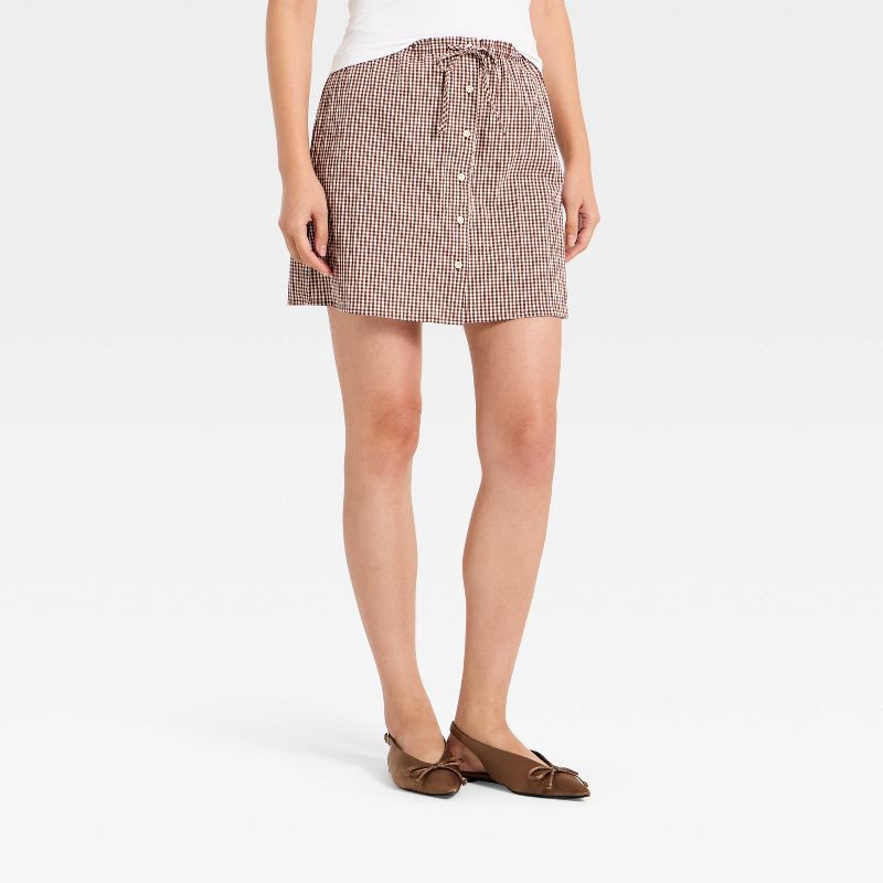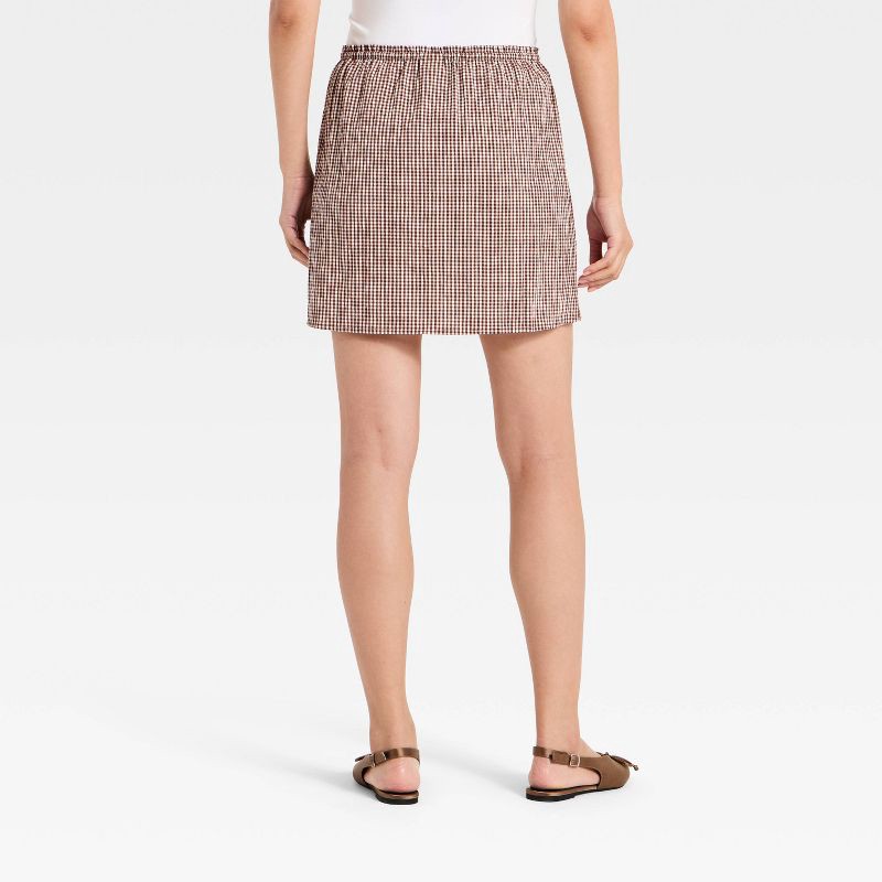 Women's Mini A-Line Skirt - A New Day™ Brown Gingham M