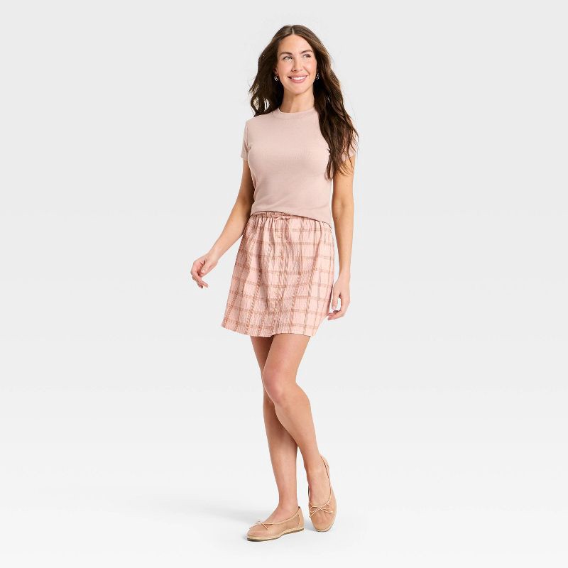 Women's Mini A-Line Skirt - A New Day™ Light Pink Plaid S