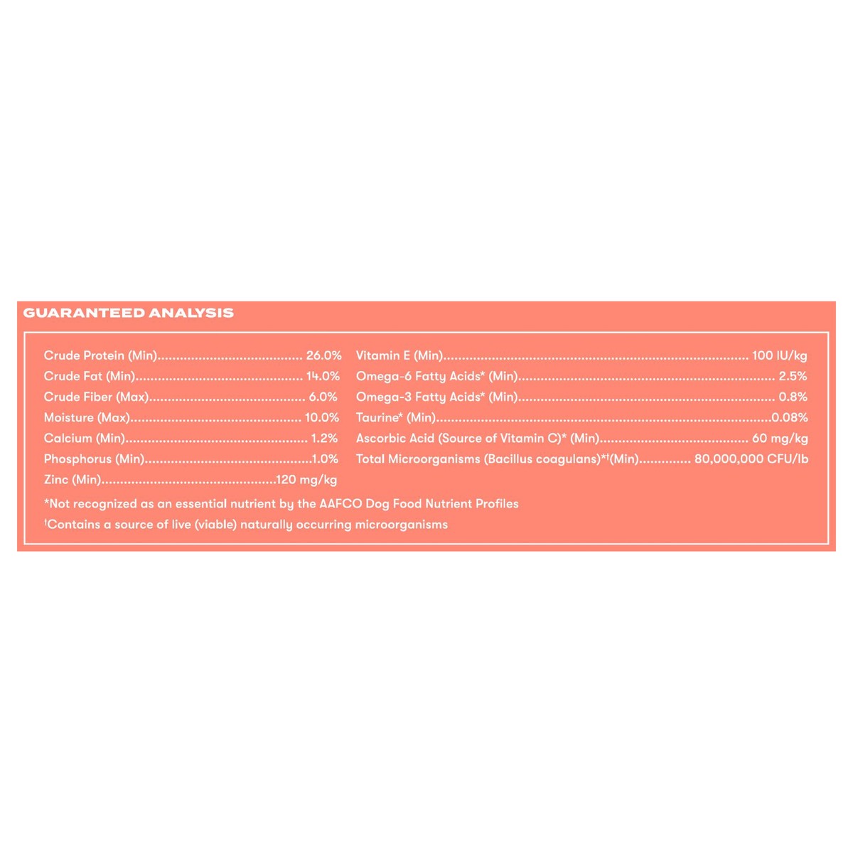 Salmon, Turkey Meal, Lentils, Peas, Chicken Fat (Preserved with Mixed Tocopherols), Sweet Potato, Carrots, Suncured Alfalfa Meal, Dried Plain Beet Pulp, Flaxseeds, Natural Flavor, Brewers Dried Yeast,…