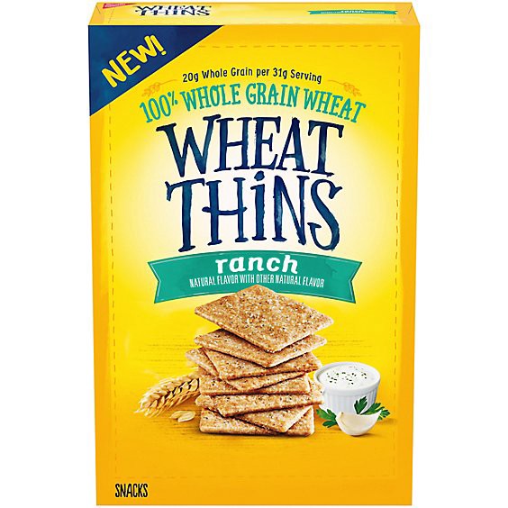 Upgrade your snacks with the satisfying crunch of Wheat Thins Ranch-Flavored Snacks, Whole Grain Wheat Crackers. Made with whole grain wheat, these savory crackers pair whole grain flavor with the ric…