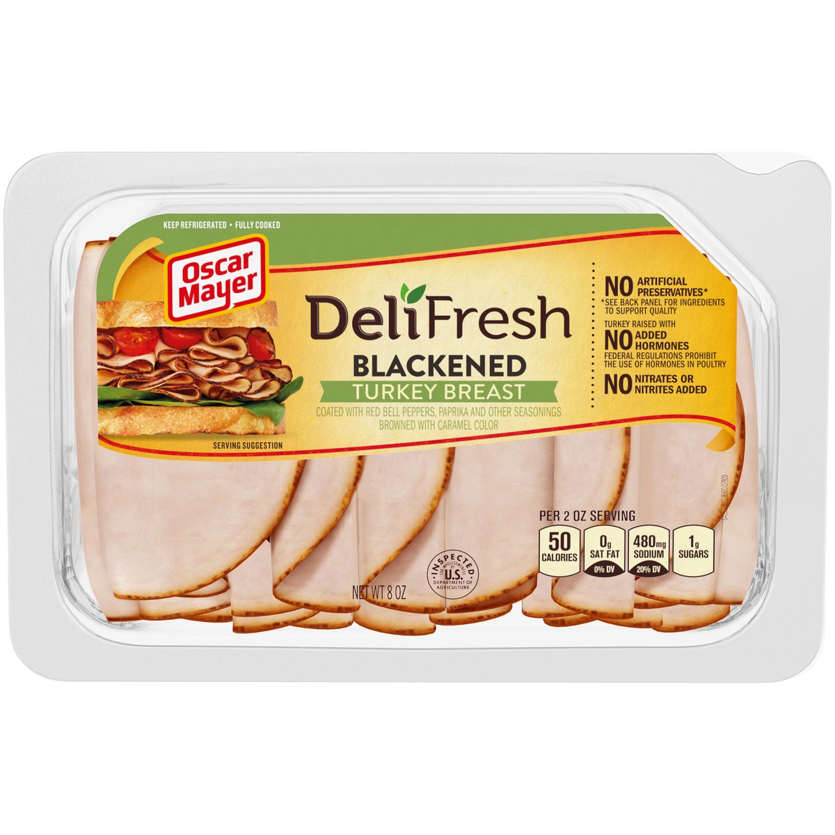 Oscar Mayer Deli Fresh Blackened Turkey Breast is quality turkey deli meat meat with no artificial preservatives, no nitrates or nitrites added, and no added hormones. So you can enjoy the fresh taste…