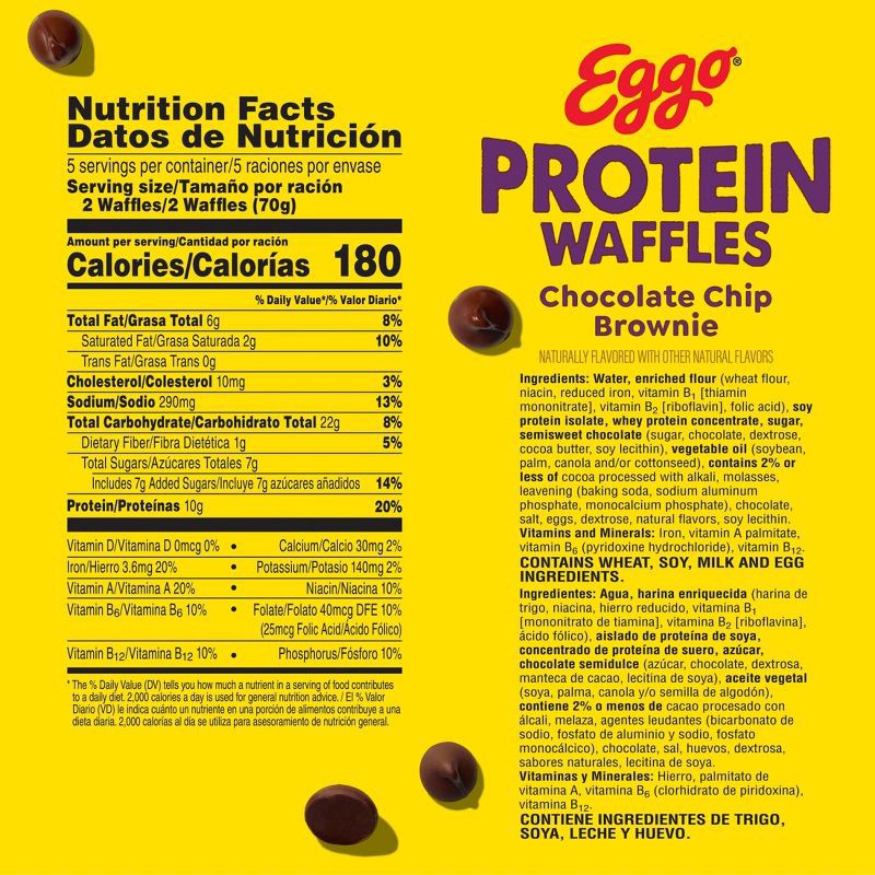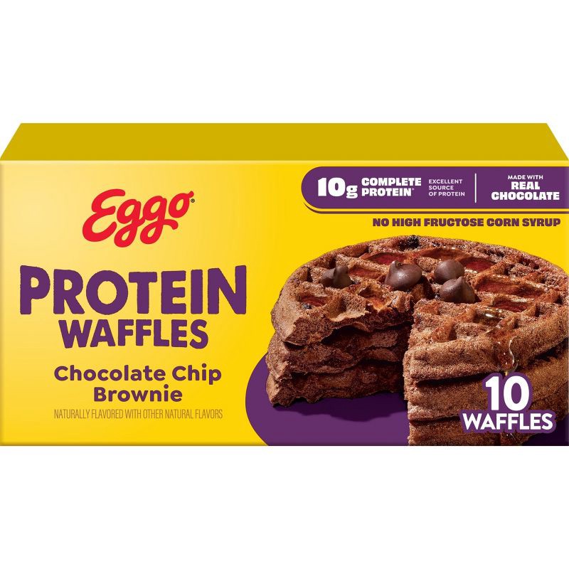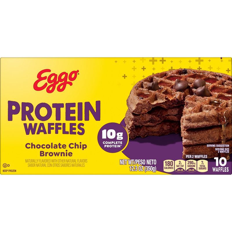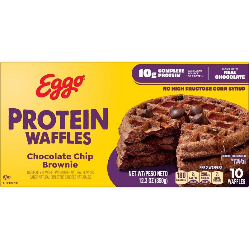 - Includes one, 12.3oz box containing 10 Eggo Protein Chocolate Chip Brownie waffles
