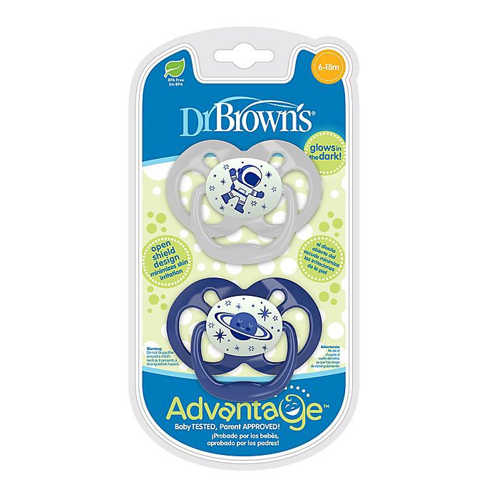 Dr. Brown's Advantage Glow-in-the-Dark 2 Piece Stage 2 Pacifiers, Blue, 6-12 Months
