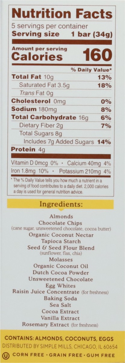 Simple Mills Soft Baked Almond Flour Chocolate Brownie Bars Bars - 5 ct