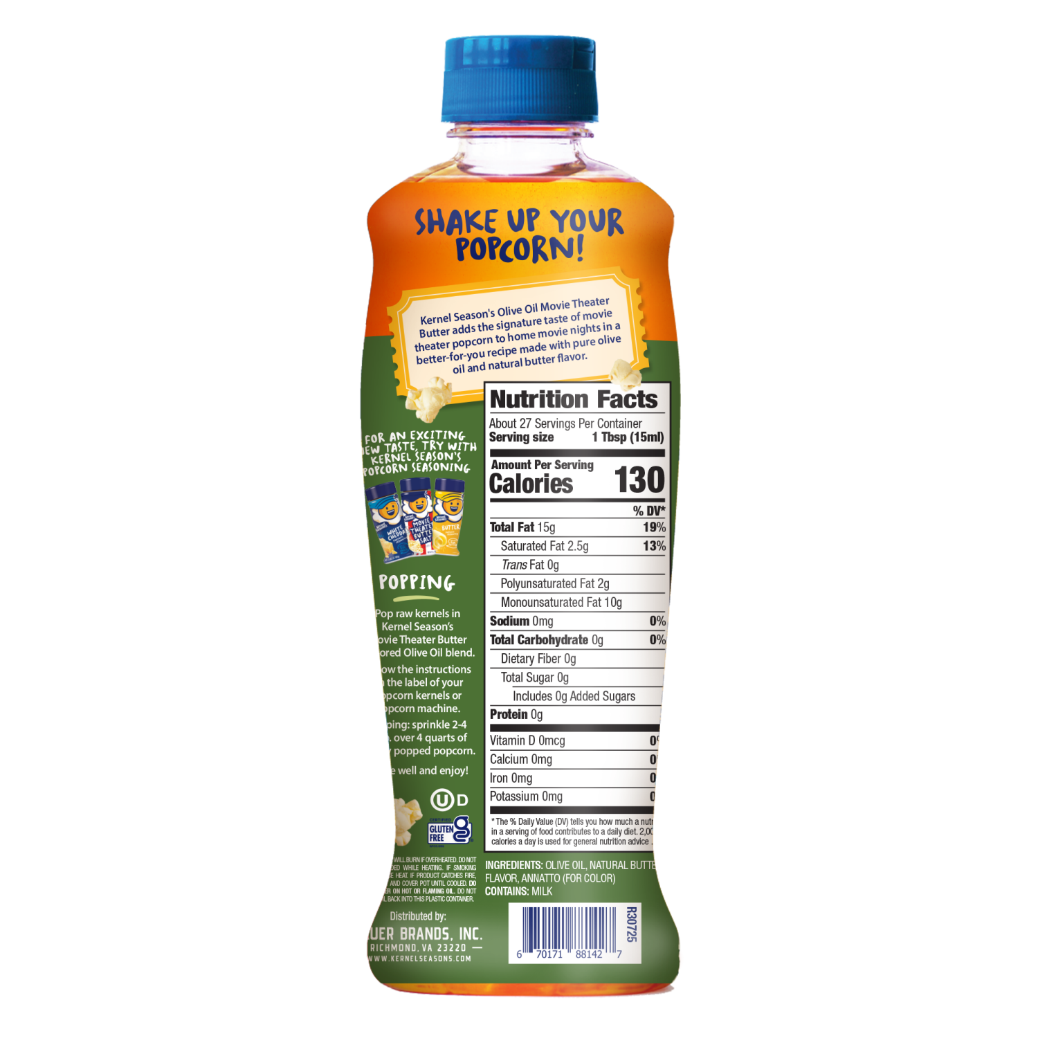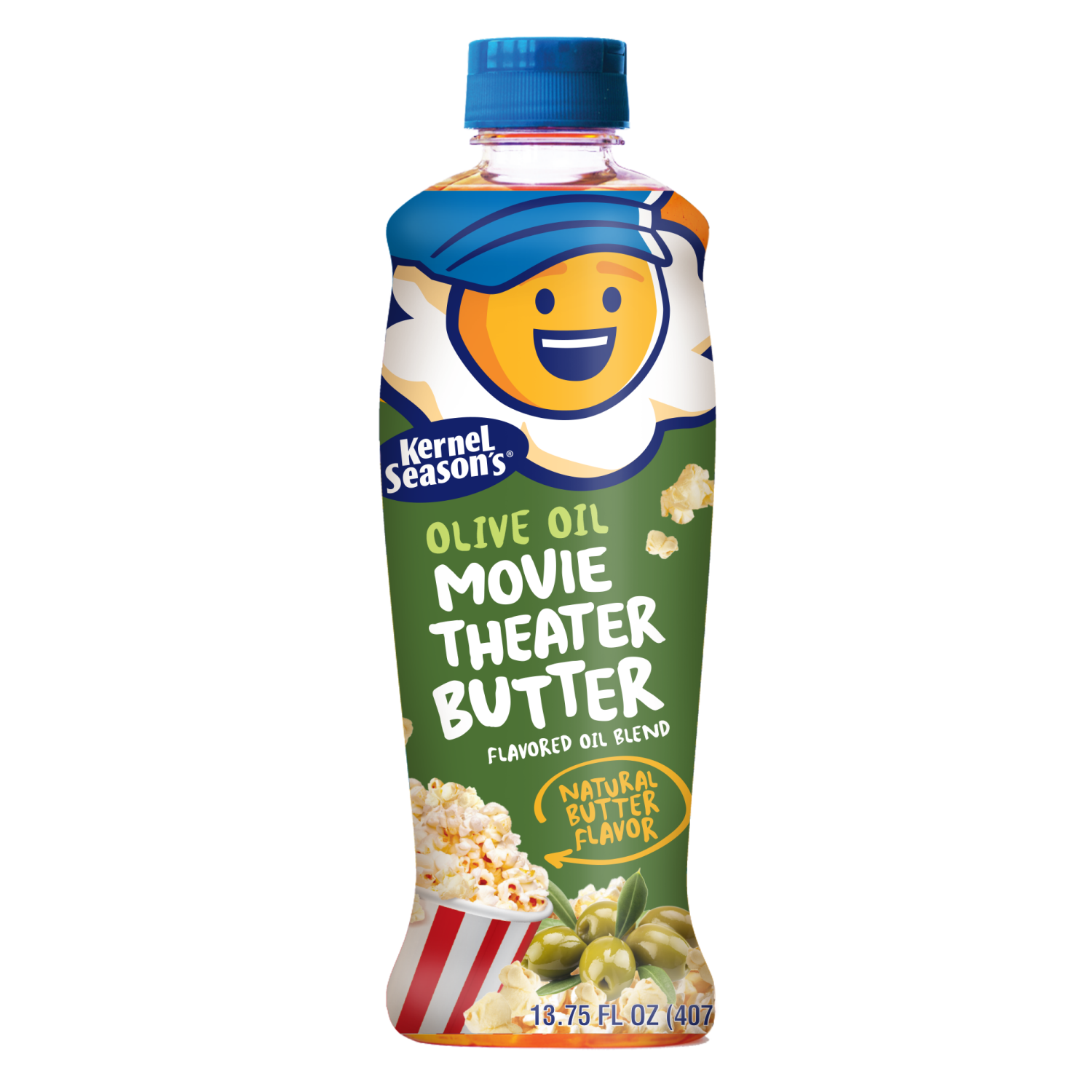 Kernel Season's Olive Oil Movie Theater Butter brings the signature taste of movie theater popcorn to home movie nights with a new better-for-you formula made with pure olive oil and natural butter fl…
