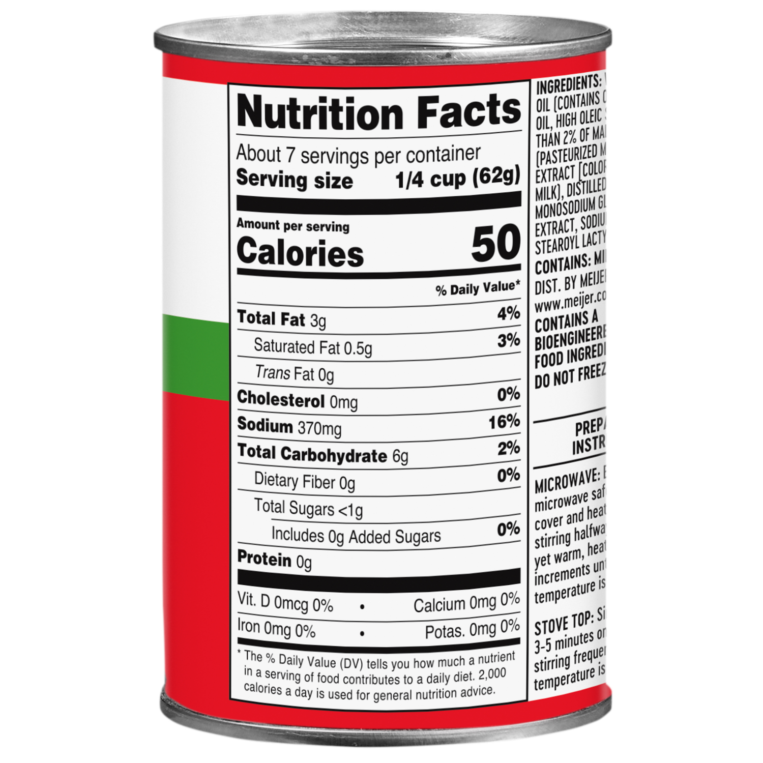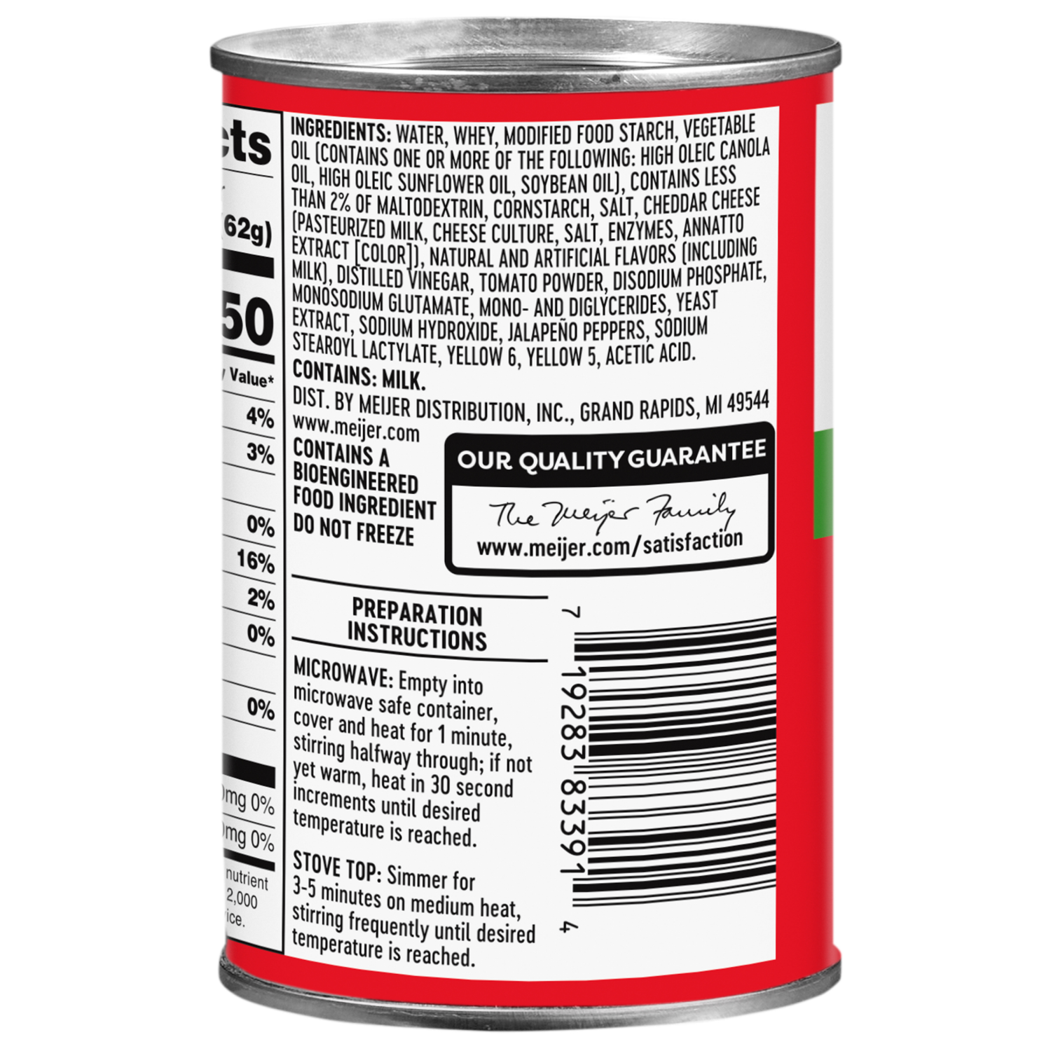 Enjoy the creamy and mild flavor of Meijer Mild Nacho Cheese. A perfect addition to your dips, and extra flavor to your tacos and burritos!
