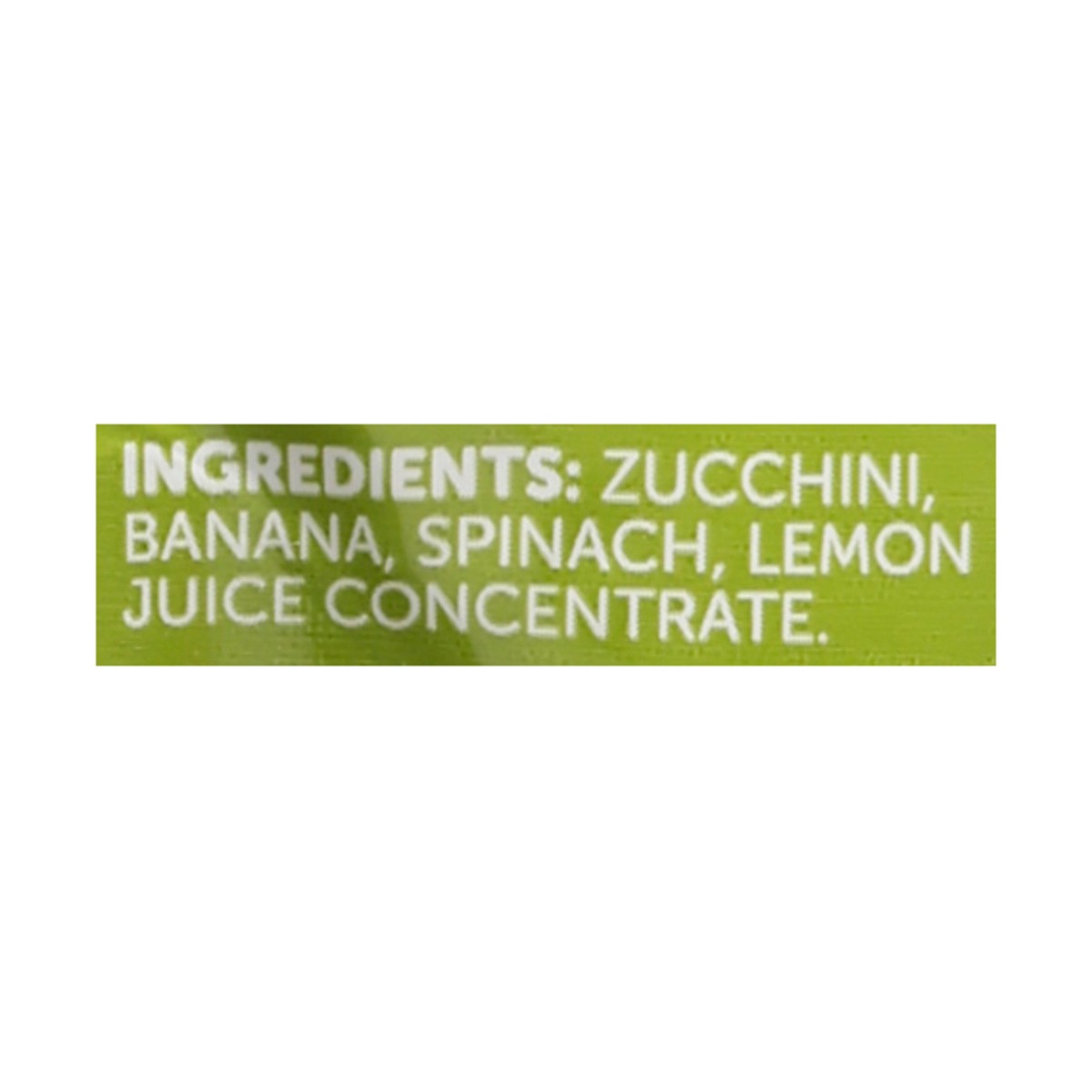 Zucchini, Banana, Spinach, Lemon Juice Concentrate.