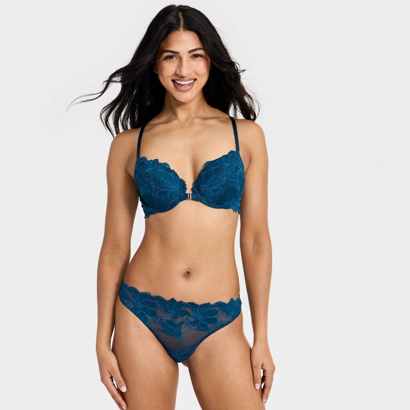 Women's Dark Lily Lace Cut Out Thong Underwear - Auden™ Blue XL