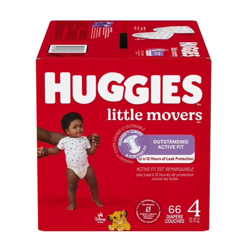 - Huggies Little Movers Diapers: 66 baby diapers, size 4 (22-37 lbs)