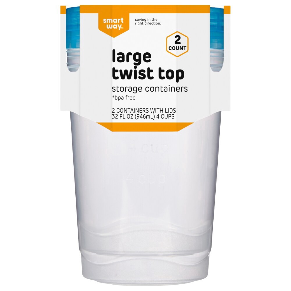 slide 1 of 3, Smart Way BPA-Free Large Twist Top Storage Containers, 2 ct / 32 fl oz