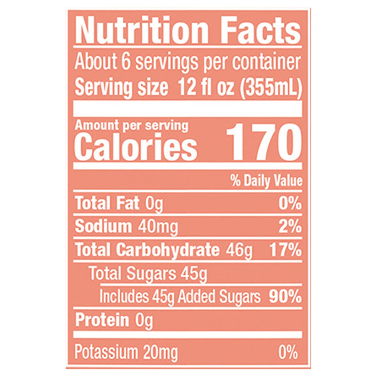 Filtered Carbonated Water, High Fructose Corn Syrup, Citric Acid, Potassium Benzoate (Preservative), Red 40, Natural and Artificial Flavors, Sodium Benzoate (Preservative), Blue 1.