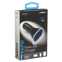This Rapid triple charger keeps your tablets, smartphones and other USB devices charged while youre on the go It operates with 12V or 24V charging systems.