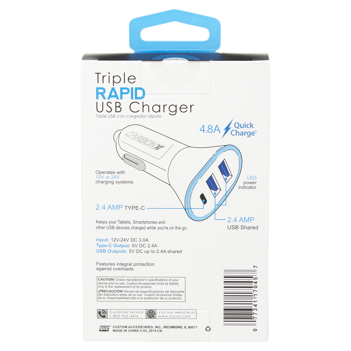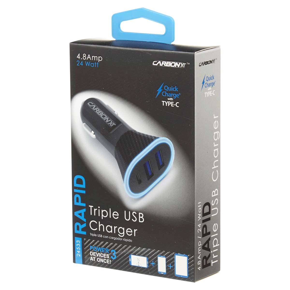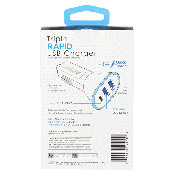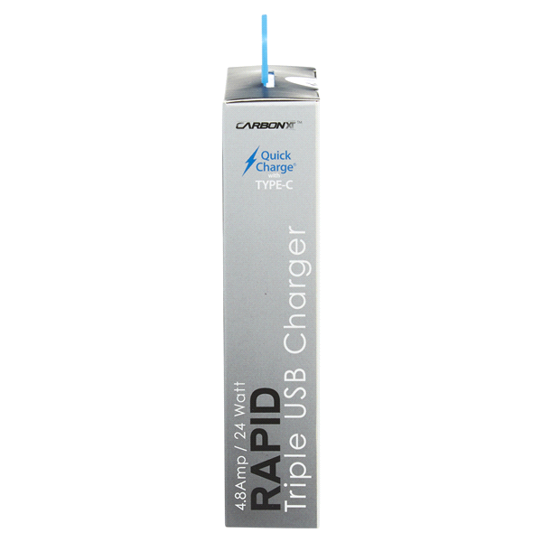 Custom Accessories Carbon XT Rapid 4.8 Amp Triple Charger with 2 USB Ports