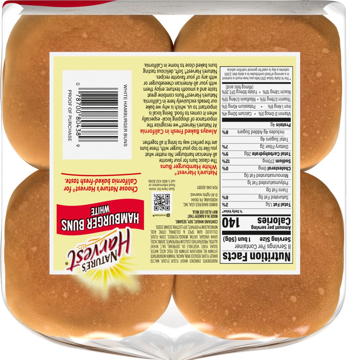 Natures Harvest White Hamburger Buns 8 Count - 14 Oz