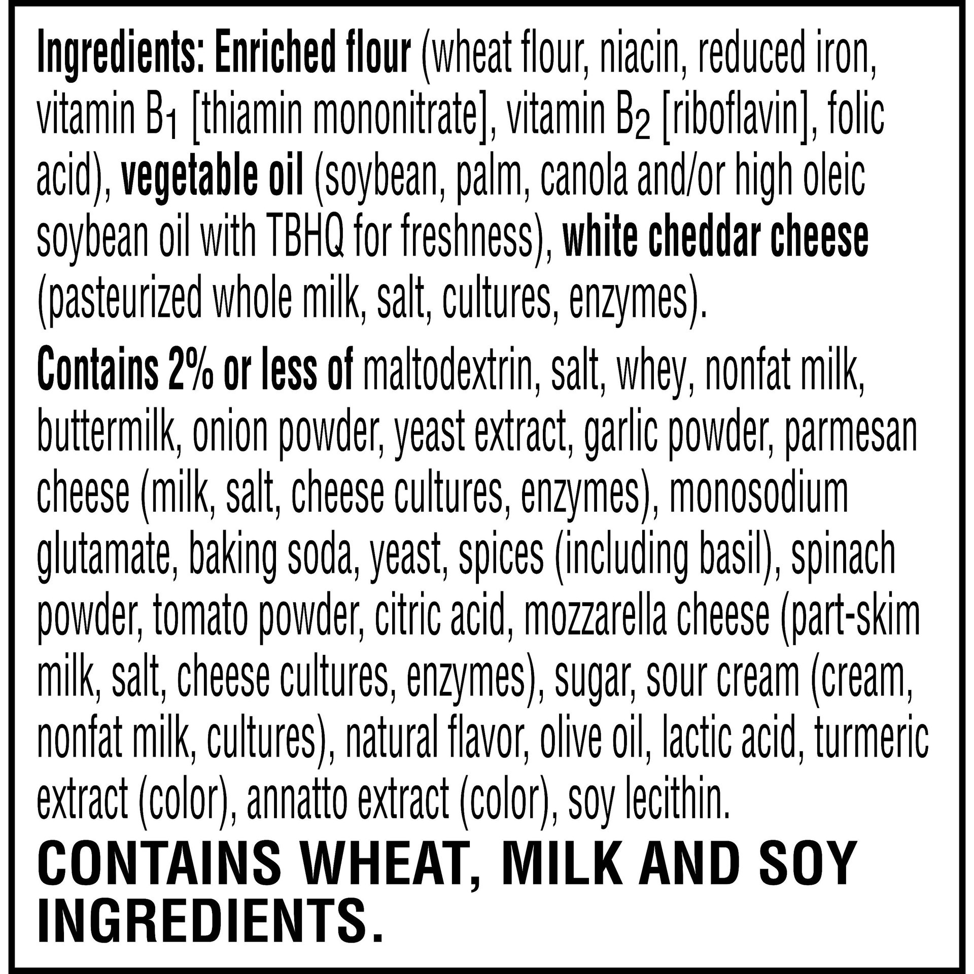 Ingredients: Enriched Flour (Wheat Flour, Niacin, Reduced Iron, Vitamin B1 [Thiamin Mononitrate], Vitamin B2 [Riboflavin], Folic Acid), Vegetable Oil (Soybean, Palm, Canola And/Or High Oleic Soybean O…