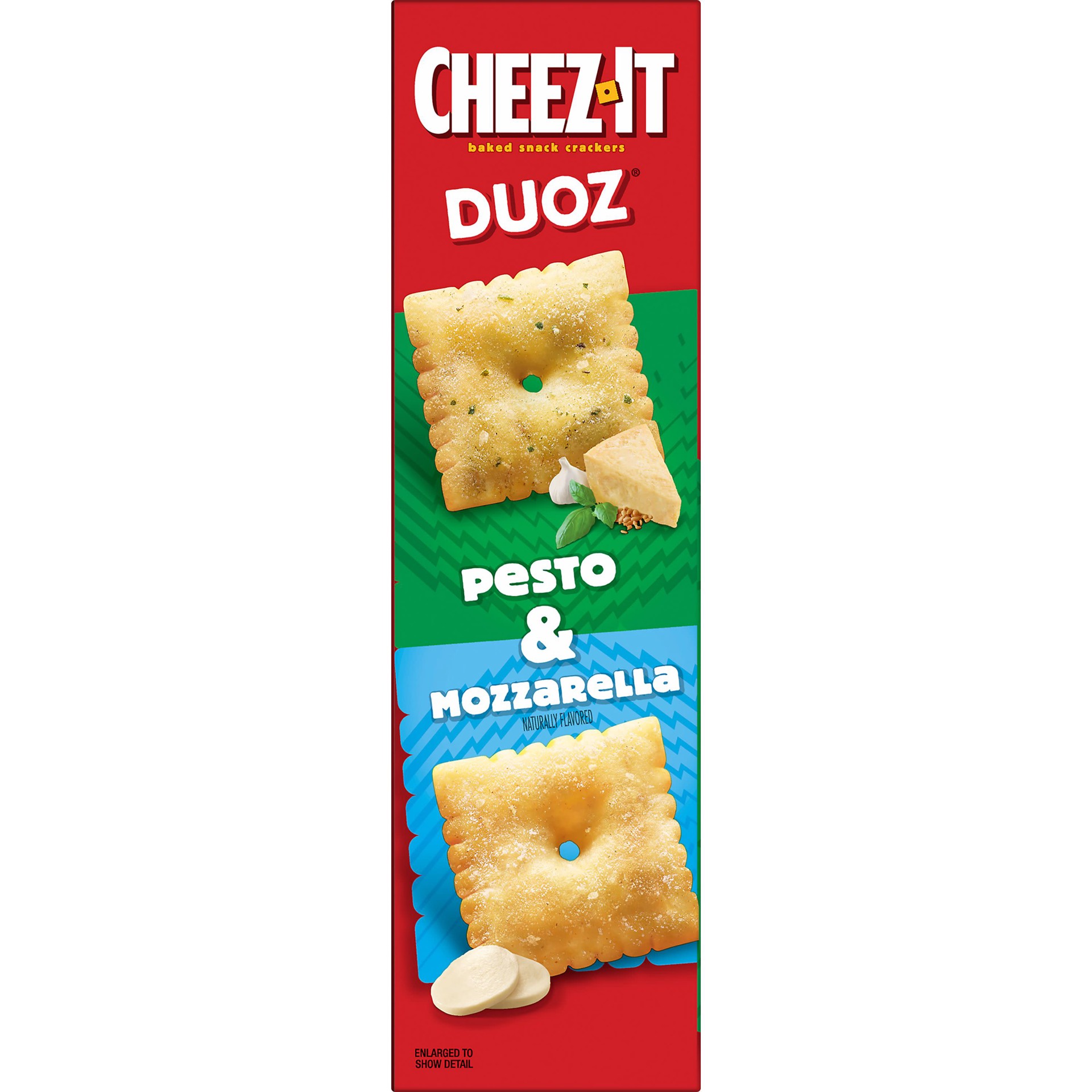 - Discover two different flavors - zesty pesto and smooth mozzarella - in one Cheez-It Duoz box; Want It