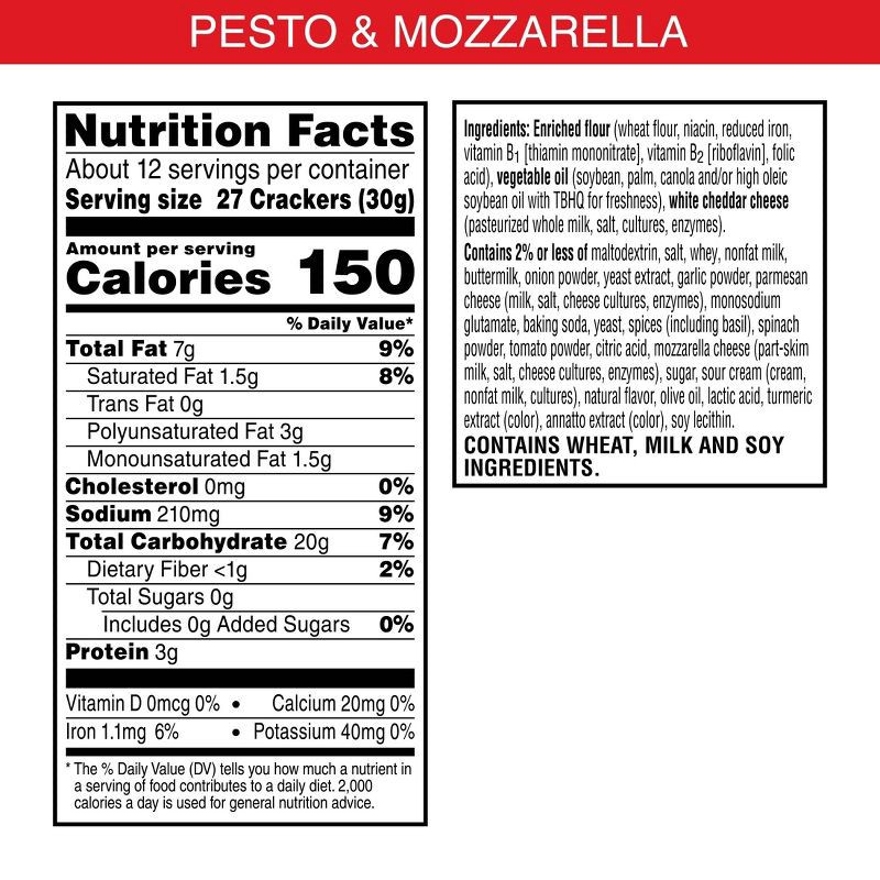 - Two is better than 1; This duo-flavor box contains both Cheez-It Pesto and Cheez-It Mozzarella baked snack crackers