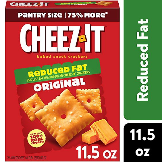 Feel good about satisfying your snack cravings with Cheez-It Reduced Fat Original Baked Snack Crackers - bite-size cheese crackers that are baked with 25% less fat than Cheez-It Original crackers* (*c…