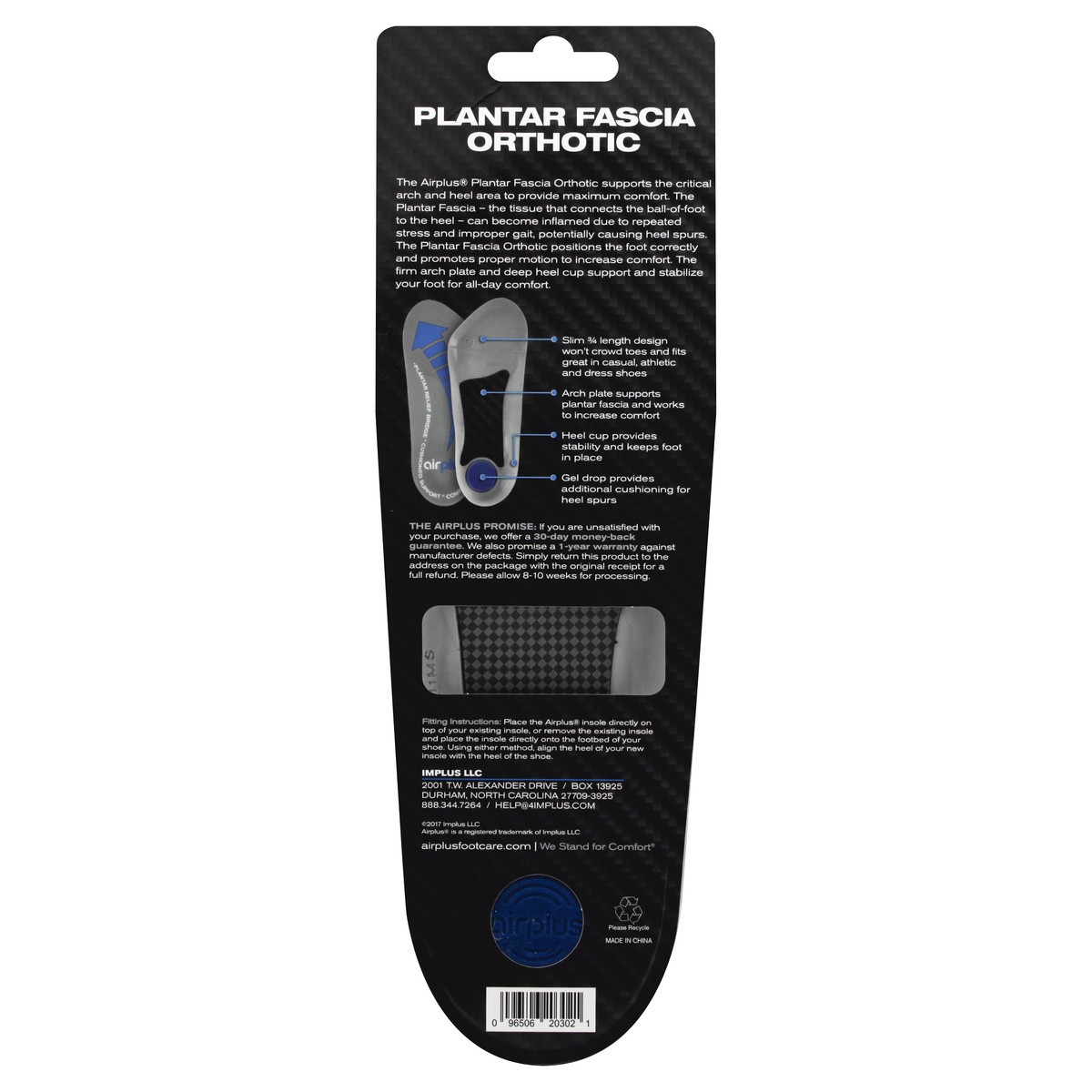 Superior support for the Planter Fascia. Full-foot comfort solution. Plantar relief bridge. Cushioned support. Comfortable gel heel. The Airplus Plantar Fascia Orthotic supports the critical arch and …