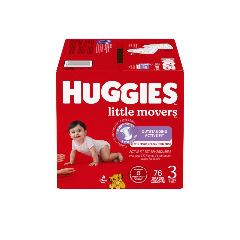 - Huggies Little Movers Diapers: 76 baby diapers, size 3 (16-28 lbs)