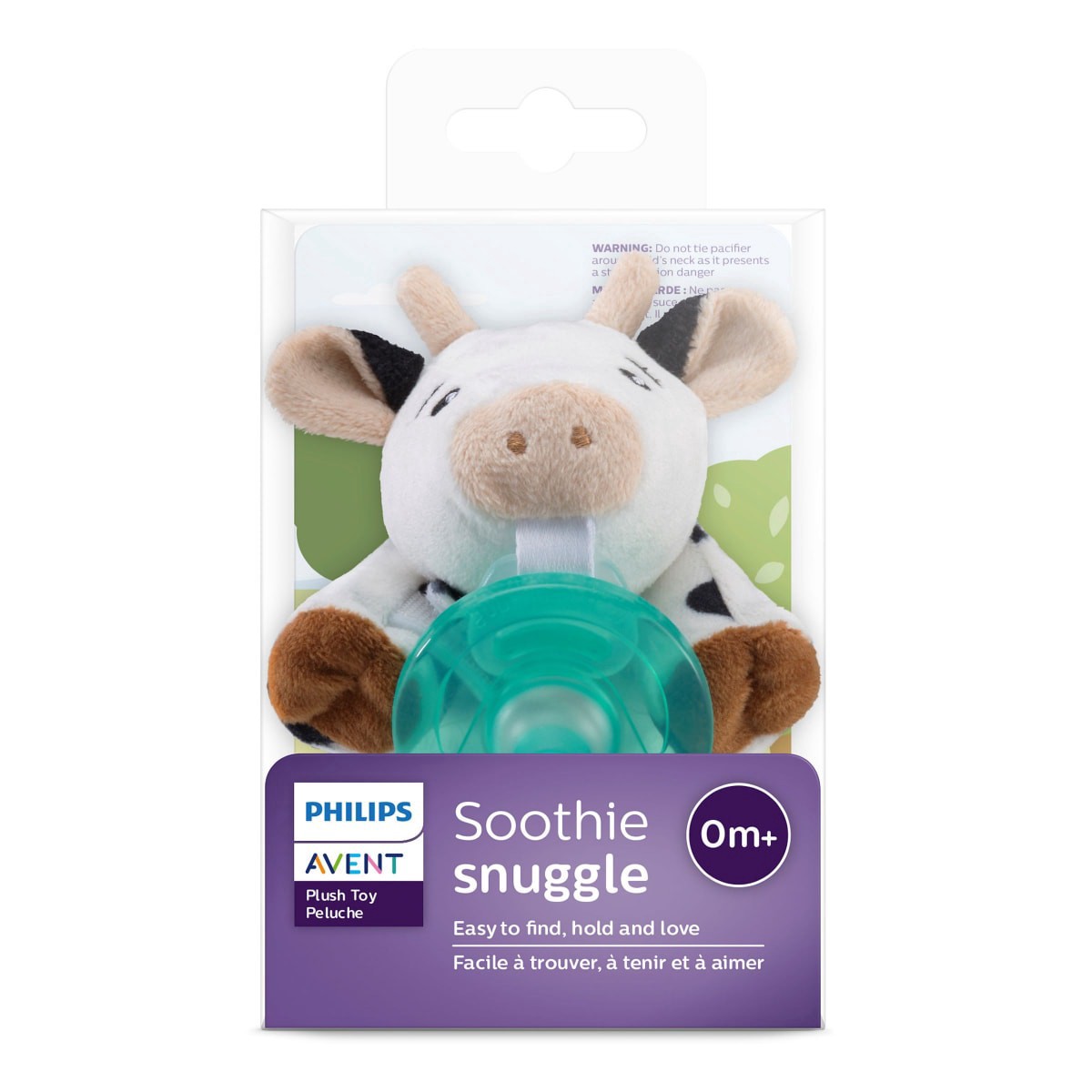 Philips Avent Soothie Snuggle Pacifier Holder with Pacifier, 0+ Months, Cow