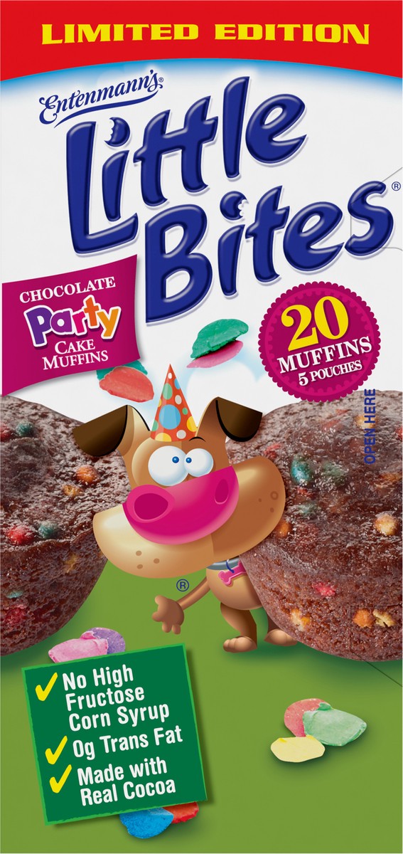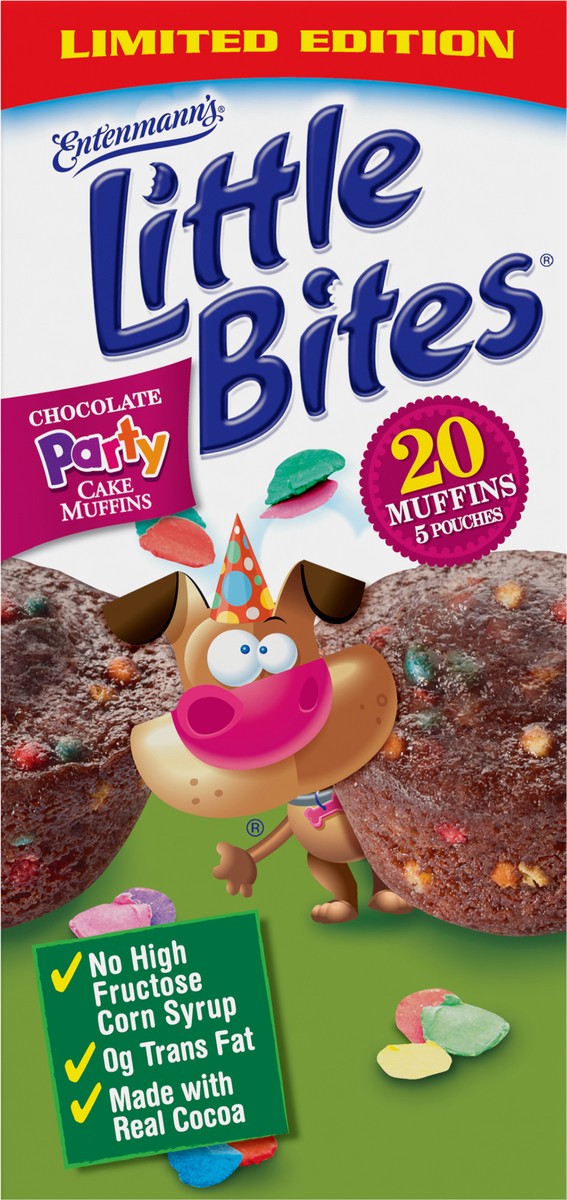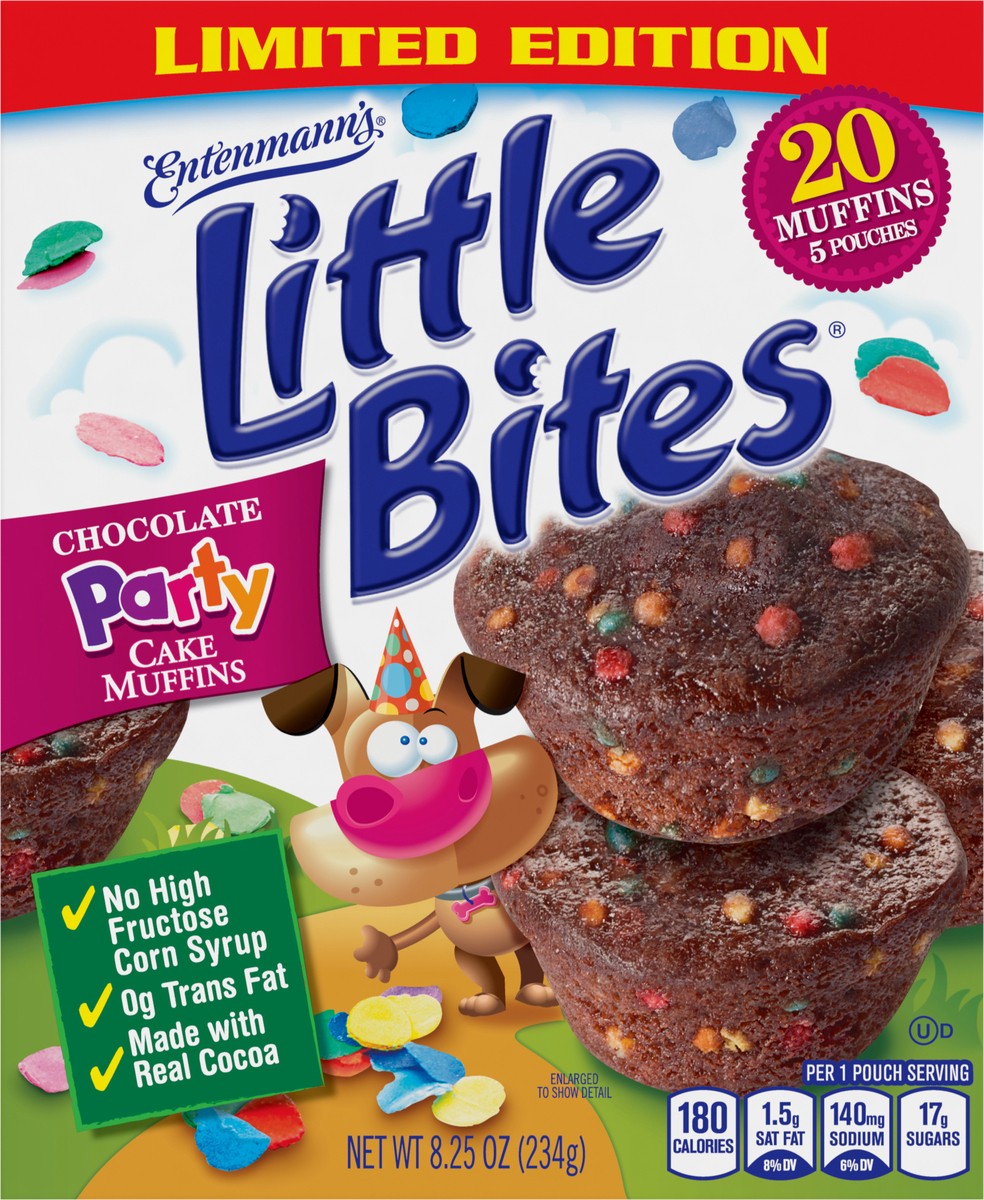 Entenmann’s Little Bites Chocolate Party Cake Muffins are always baked moist and delicious. These tasty chocolate mini muffins are made with colorful rainbow sprinkles and real cocoa. You’ll also be g…