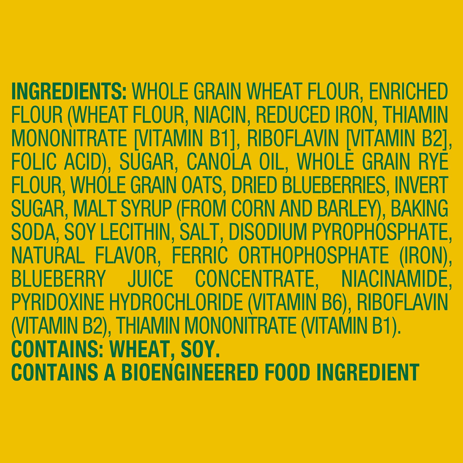 INGREDIENTS: WHOLE GRAIN WHEAT FLOUR, ENRICHED FLOUR (WHEAT FLOUR, NIACIN, REDUCED IRON, THIAMIN MONONITRATE [VITAMIN B1], RIBOFLAVIN [VITAMIN B2], FOLIC ACID), SUGAR, CANOLA OIL, WHOLE GRAIN RYE FLOU…