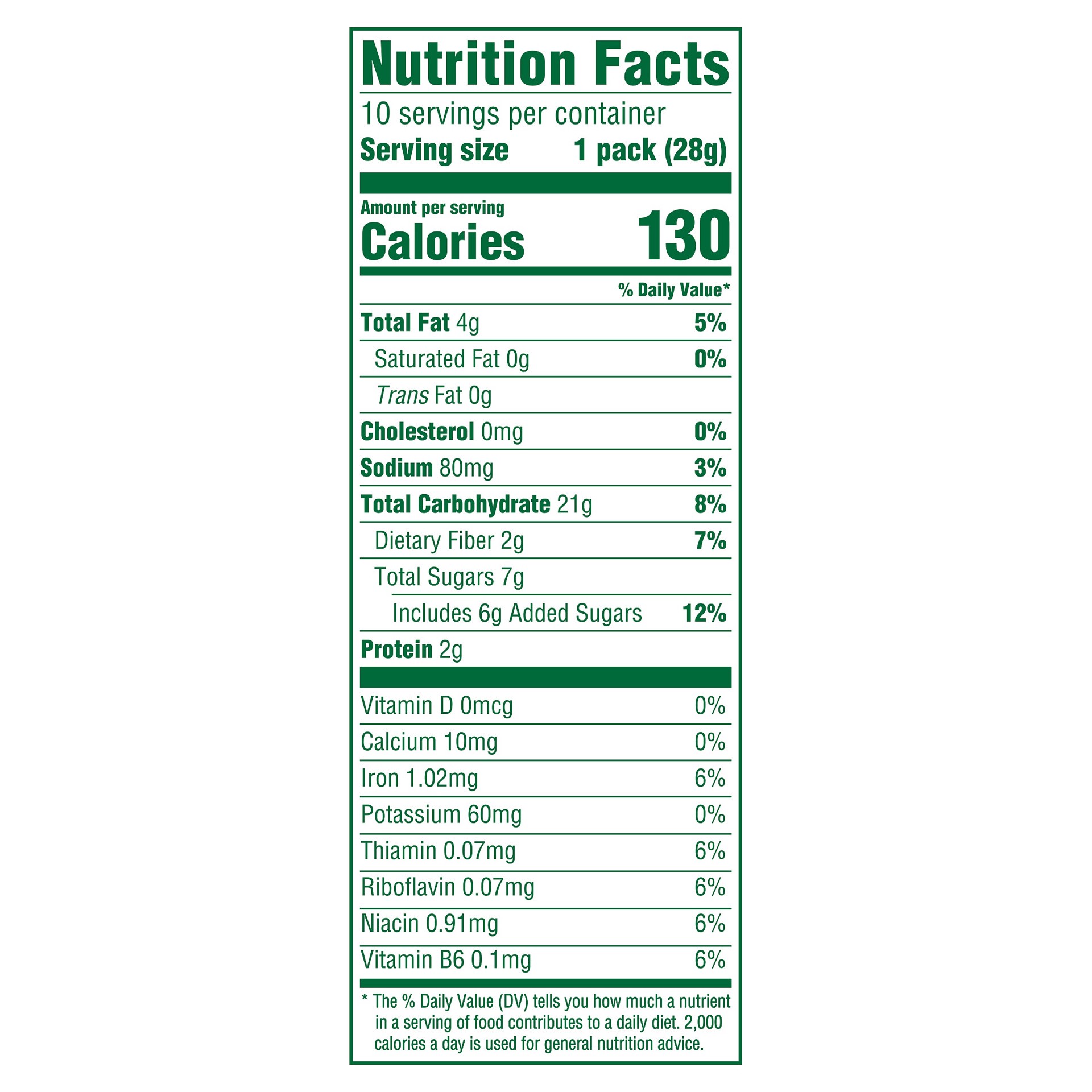 - Morning snack containing 12 grams of whole grain and 4 grams of total fat per 28-gram serving; energizing alternative to breakfast biscuits