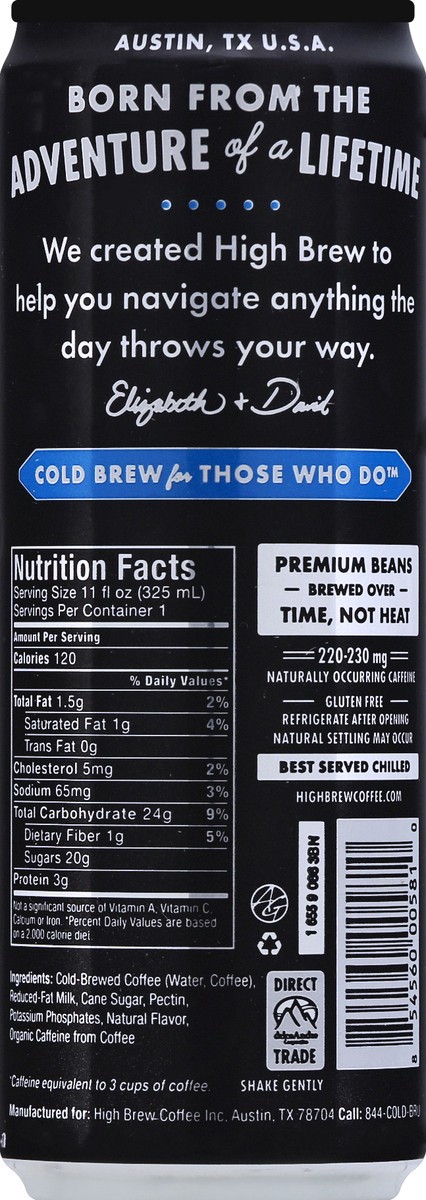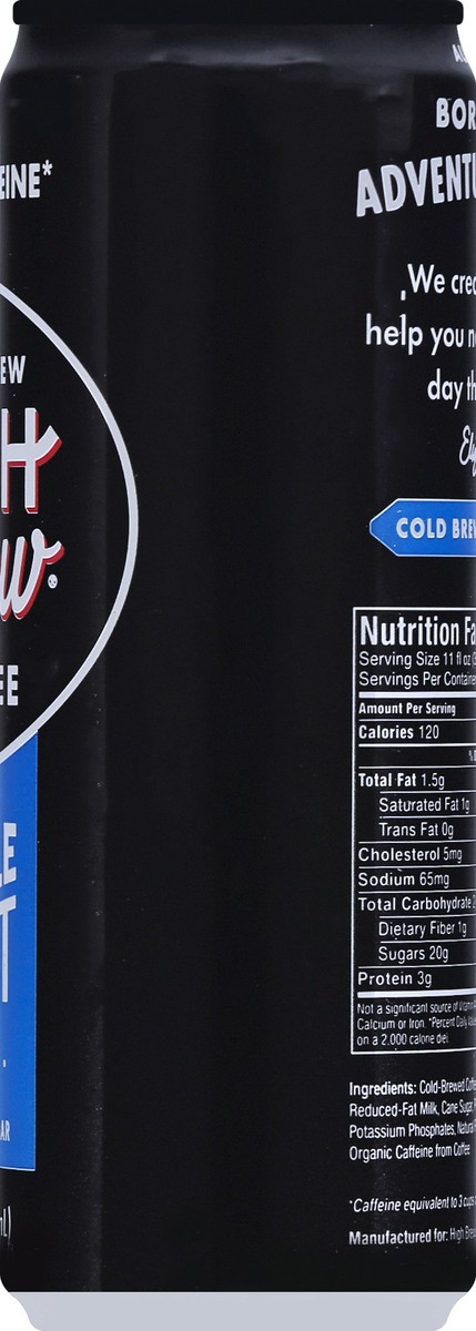 With milk & sugar. 3x caffeine (Caffeine equivalent to 3 cups of coffee).Born from the adventure of a lifetime. We created high brew to help you navigate anything the day throws your way. Cold brew fo…
