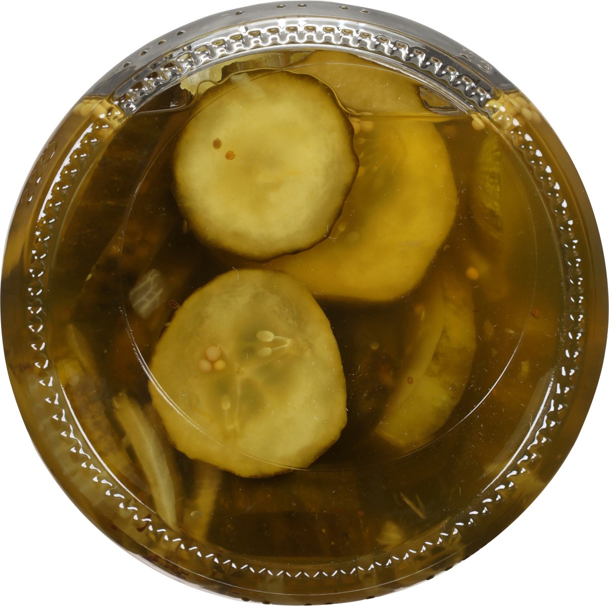 Cucumbers, Sugar, Water, Vinegar, Sea Salt, Contains Less than 1% of: Dehydrated Onion, Mustard and Celery Seeds, Calcium Chloride (Firming Agent), Natural Flavors, and Carrot and Turmeric Extracts (f…