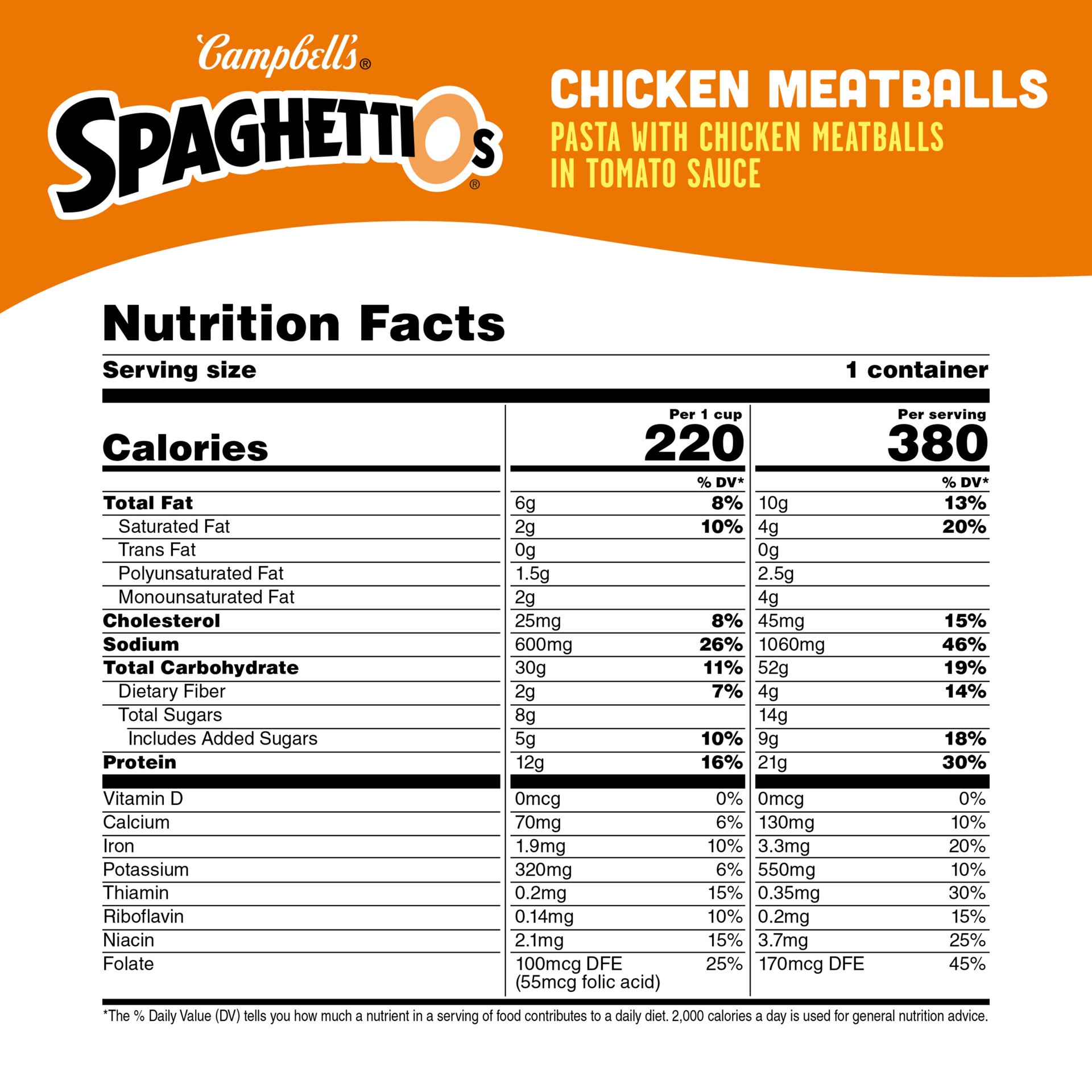 Campbell's Spaghettios Canned Pasta With Chicken Meatballs - 15.6 Oz