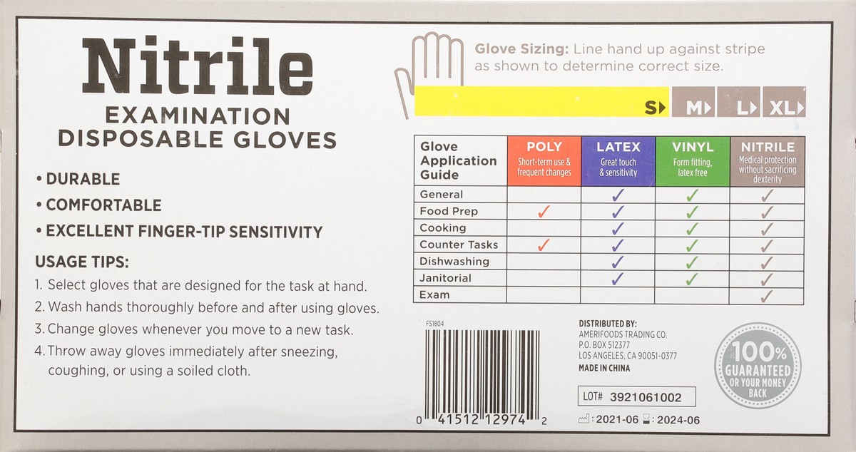 Since 1871. Examination grade. Multi purpose. Powder free. Non-sterile. Ambidextrous. Durable. Comfortable. Excellent finger-tip sensitivity. Glove Sizing: Line hand up against stripe as shown to dete…