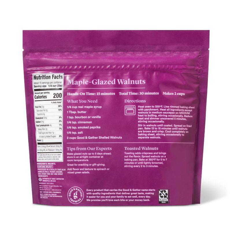 Keep a package of Shelled Walnuts from Good & Gather™ on hand for everything from new baking recipes to layered salads and more. This package of walnuts comes shelled and ready to use, taking the extr…