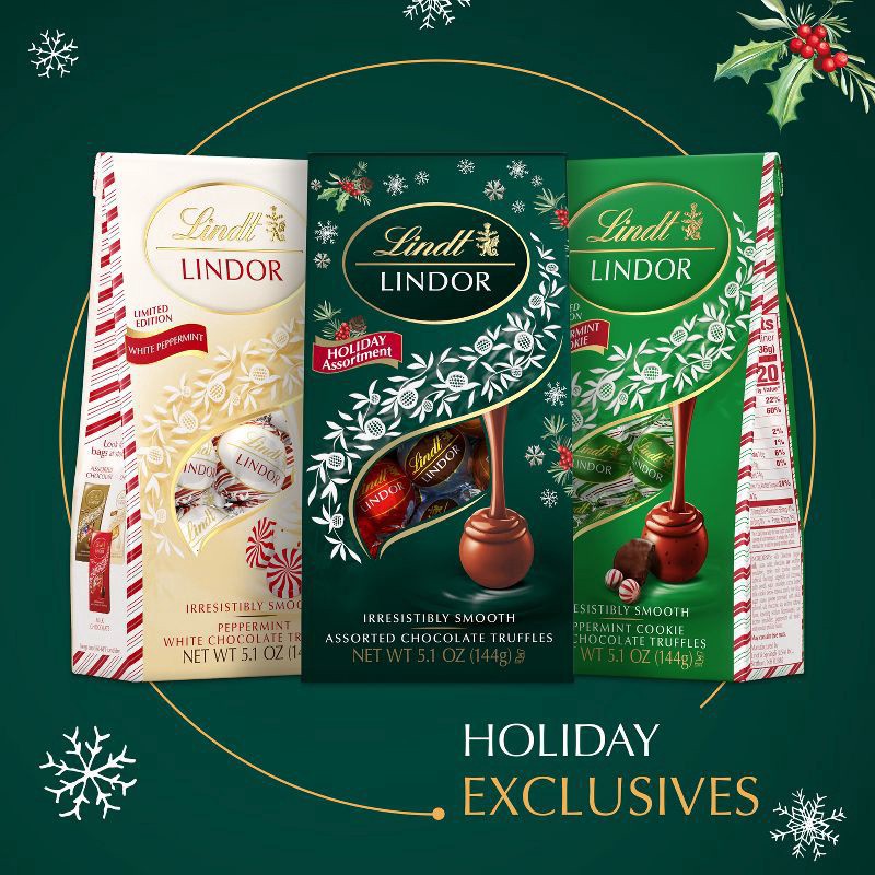 Lindt Lindor Holiday Assorted Chocolate Candy Truffles With Smooth, Melting Truffle Center, 5.1 oz