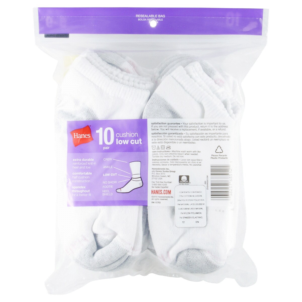 Avoid sock bulkiness at the ankle with Hanes Women's 10pk Low Cut Cushion Socks in white, one size fits all. These low cut socks are great with tennis shoes, booties and more. The soft fabric and last…