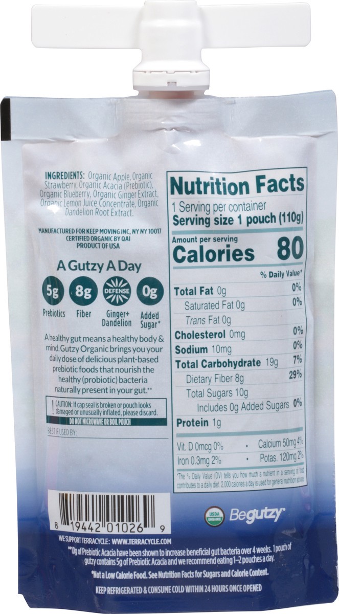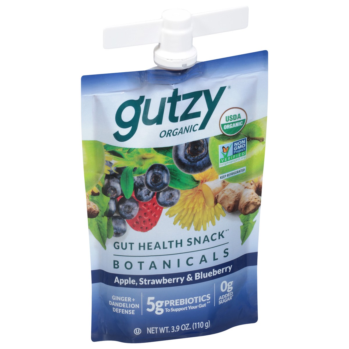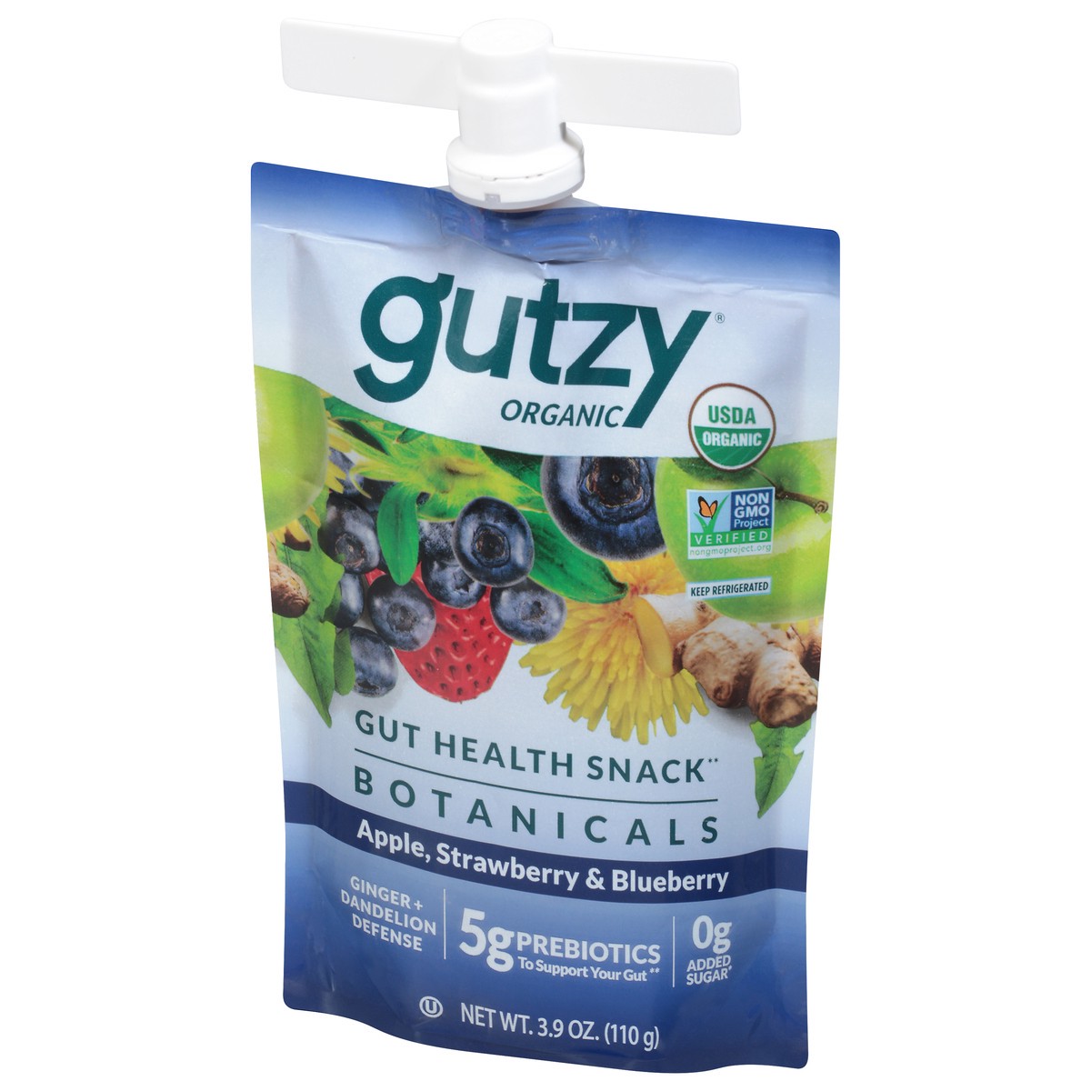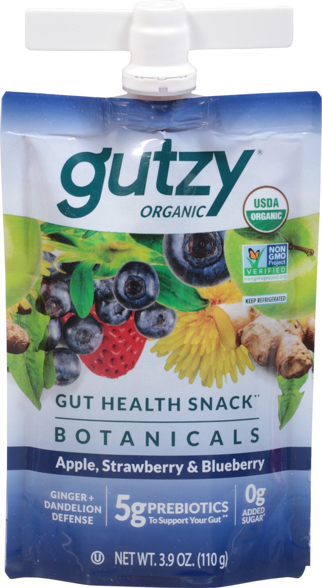 Gutzy Organic Apple Strawberry Blueberry + Ginger Dandelion Prebiotic Gut Health Snack 3.9 oz