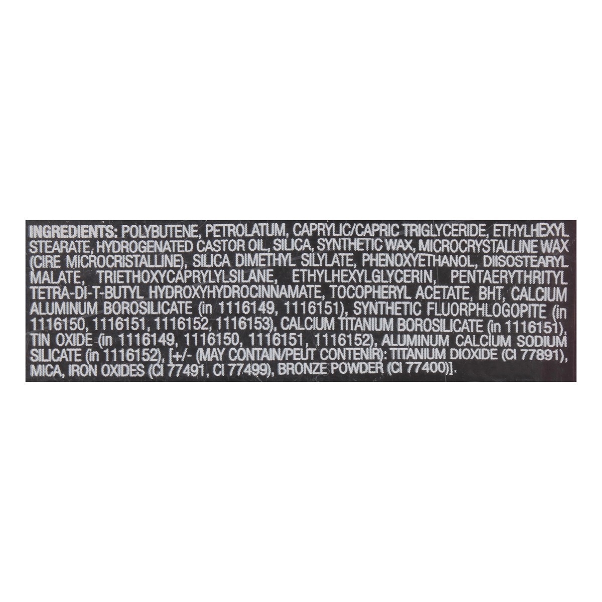 Polybutene, Petrolatum, Caprylic/Capric Triglyceride, Ethylhexyl Stearate, Hydrogenated Castor Oil, Silica, Synthetic Wax, Microcrystalline Wax (Cire Microcristalline), Silica Dimethyl Silylate, Pheno…
