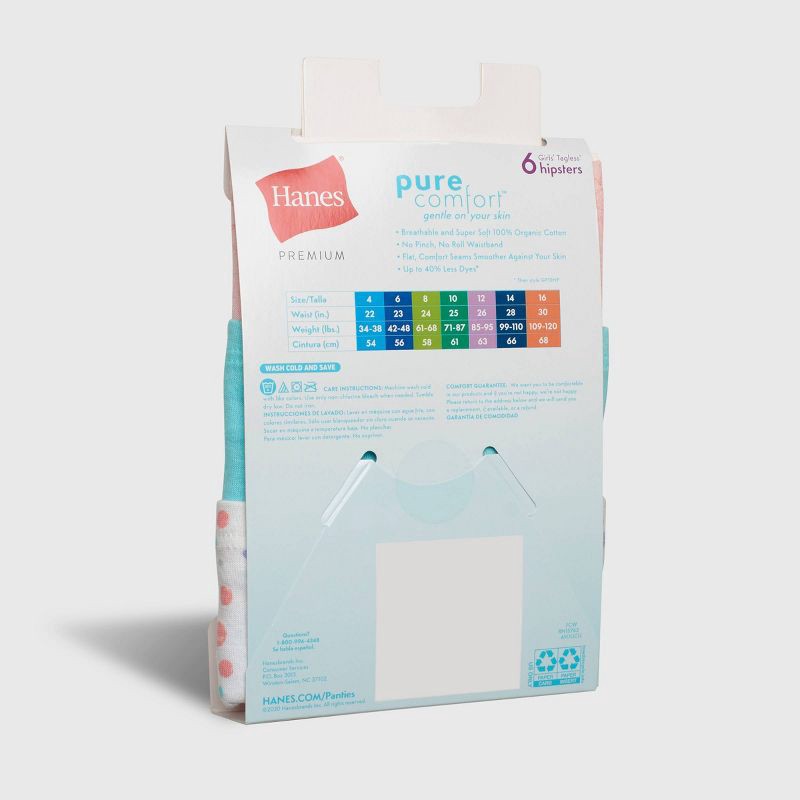 The Hanes Pure Comfort Girls' Hipster Underwear are made from 100% organic cotton. They are soft and comfortable and made responsibly. They include 40% less chemicals and dyes and feature flat comfort…