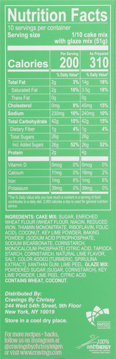 Non-GMO Project verified. nongmoproject.org. Just add egg, oil and water. Cravings by Chrissy Teigen. Glaze mix & coconut flake packets included. Simply the zest. It's called taste. Lay it on the lime…
